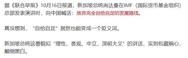 新加坡劝中国放弃自给自足的言论,暴露了其在中美博弈中的立场。